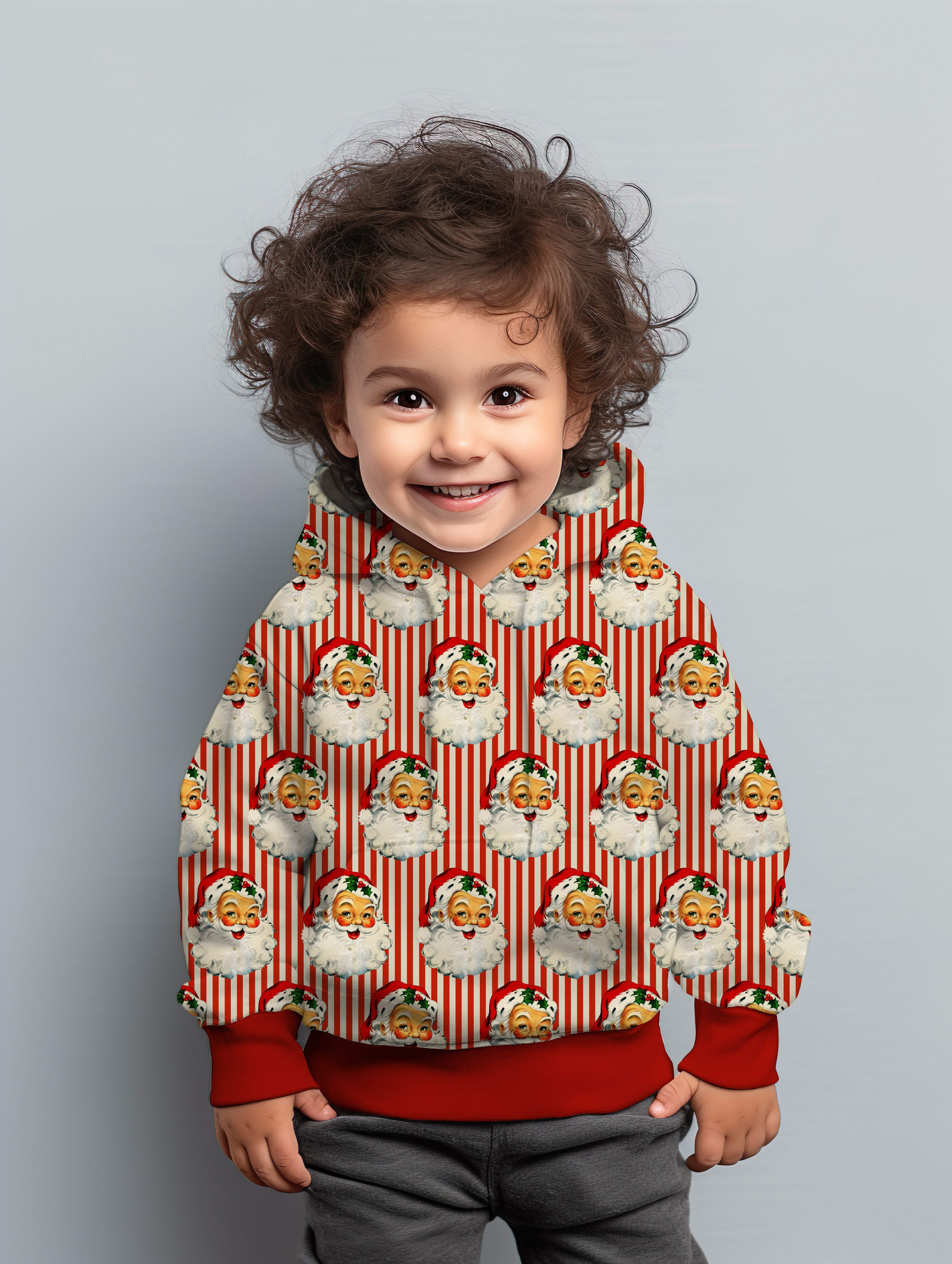 Wrap your little one in cosy charm with our hoodie, lovingly made in the UK. Featuring a unique, exclusive design, this hoodie captures the magic of Christmas. green cuffs, hem and neckline.