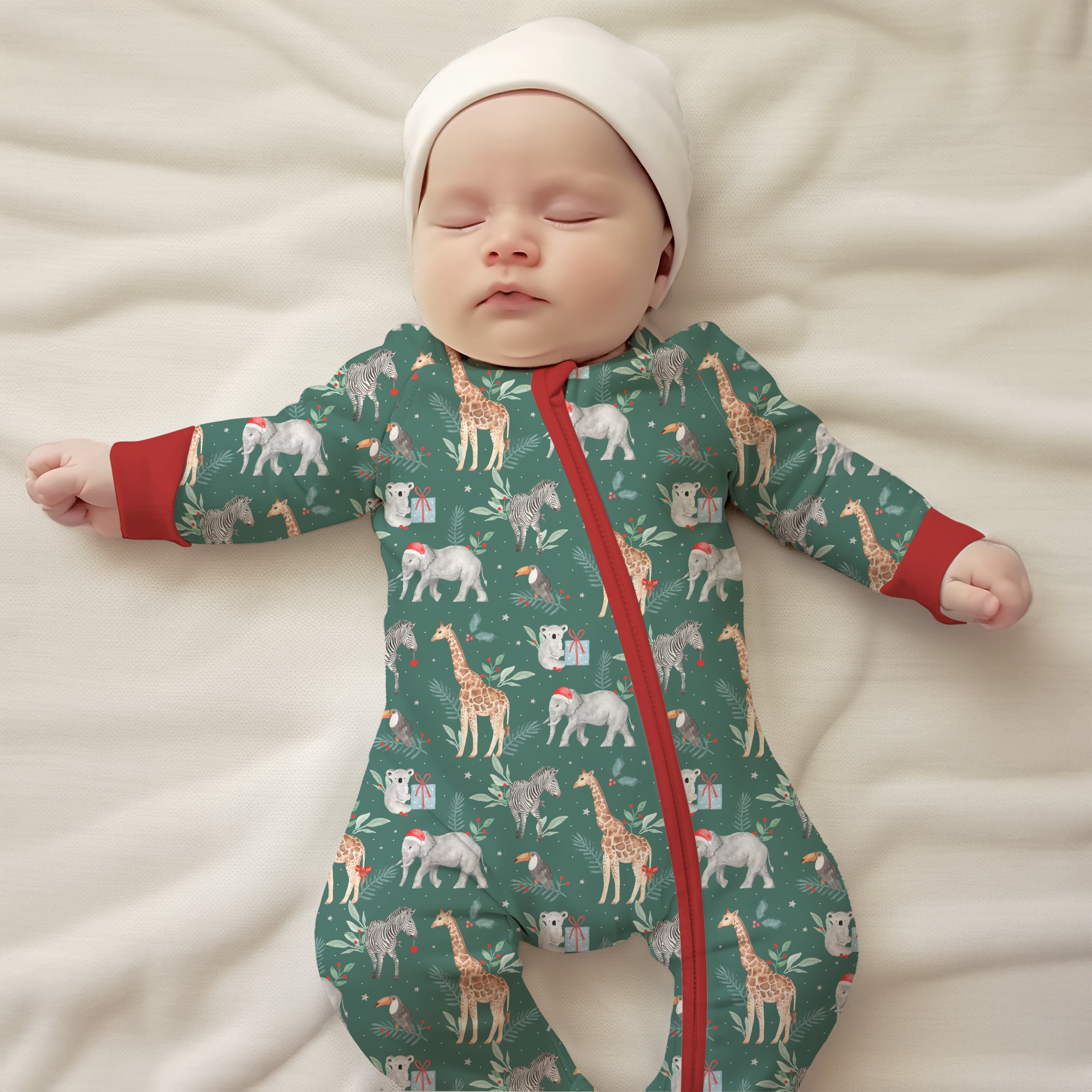 Soft, comfy, and festive!  Crafted from 100% organic cotton jersey, featuring a beautiful Christmas print perfect for little ones this holiday season.