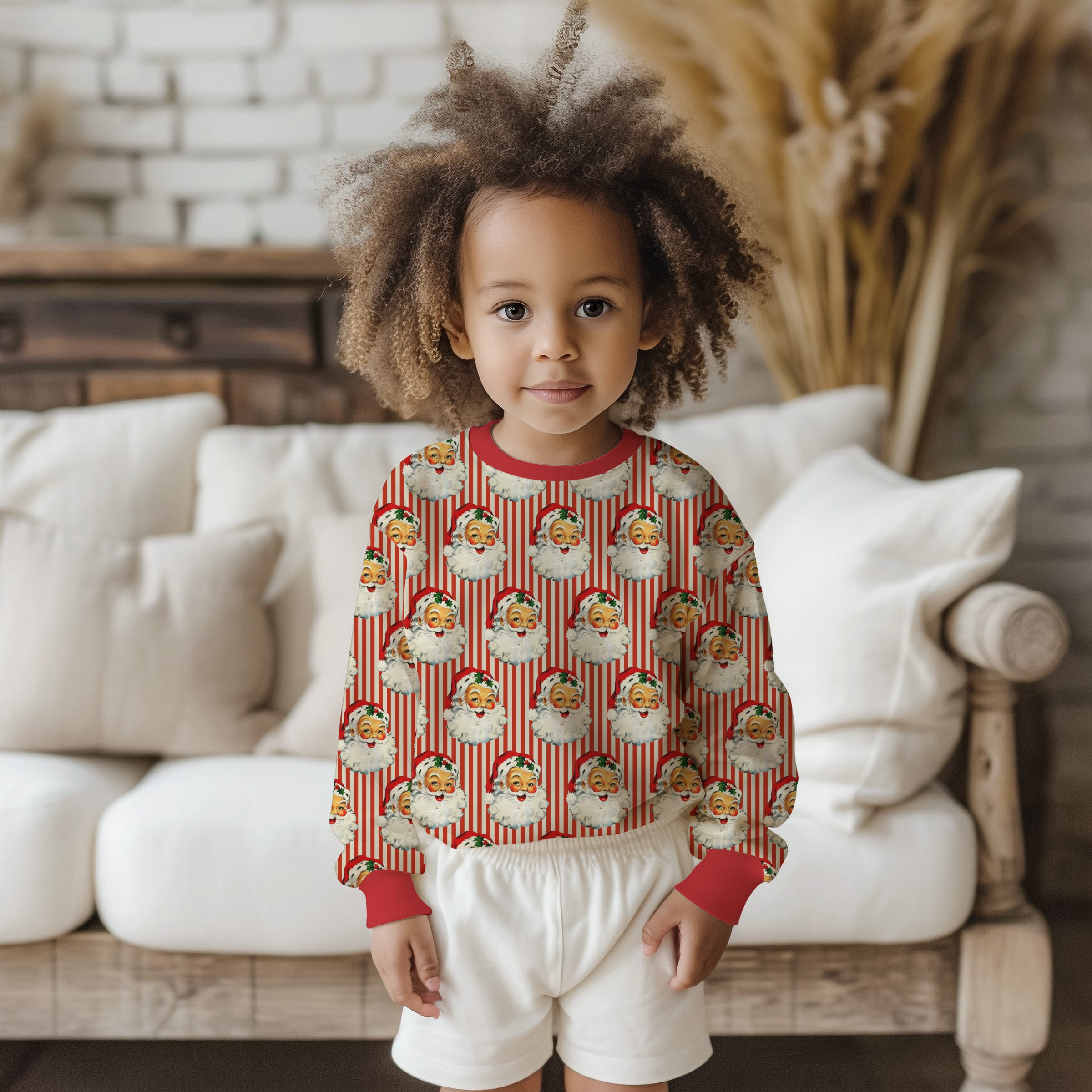 Wrap your little one in cosy charm with our Santa Stripe Sweatshirt, lovingly made in the UK. Featuring a unique, exclusive design, this sweatshirt captures the magic of Christmas. Letterbox red cuffs, hem and neckline.