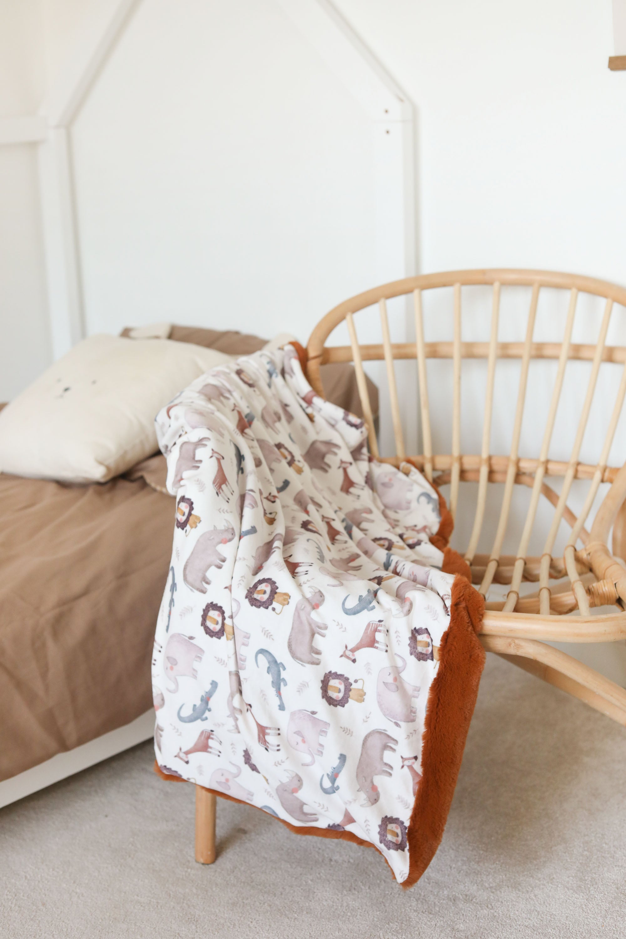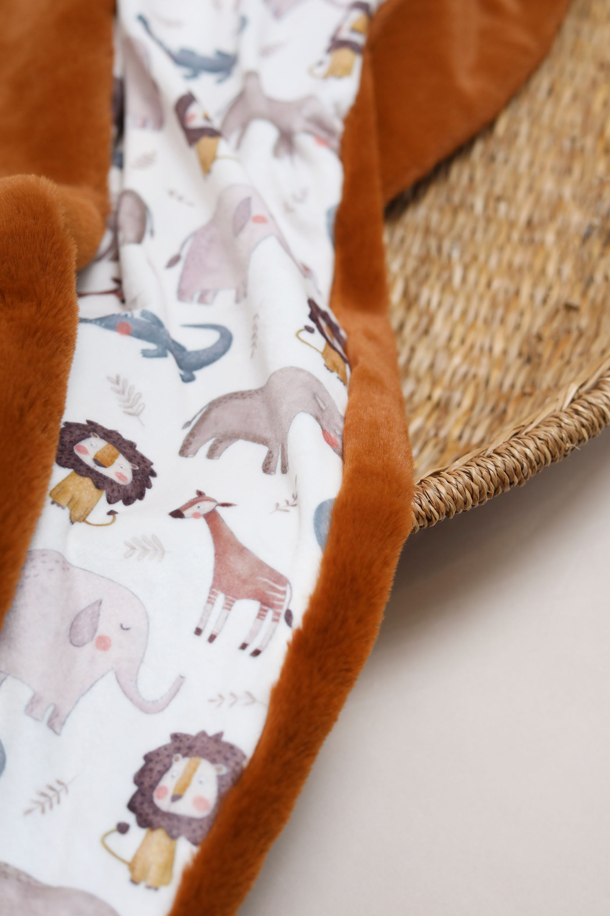 - Please note: Due to the unique nature of the fabrics used, blankets may not be perfectly symmetrical. The squish fleece has stretch, while the faux fur does not—this is completely normal and part of the handmade charm of each piece.
